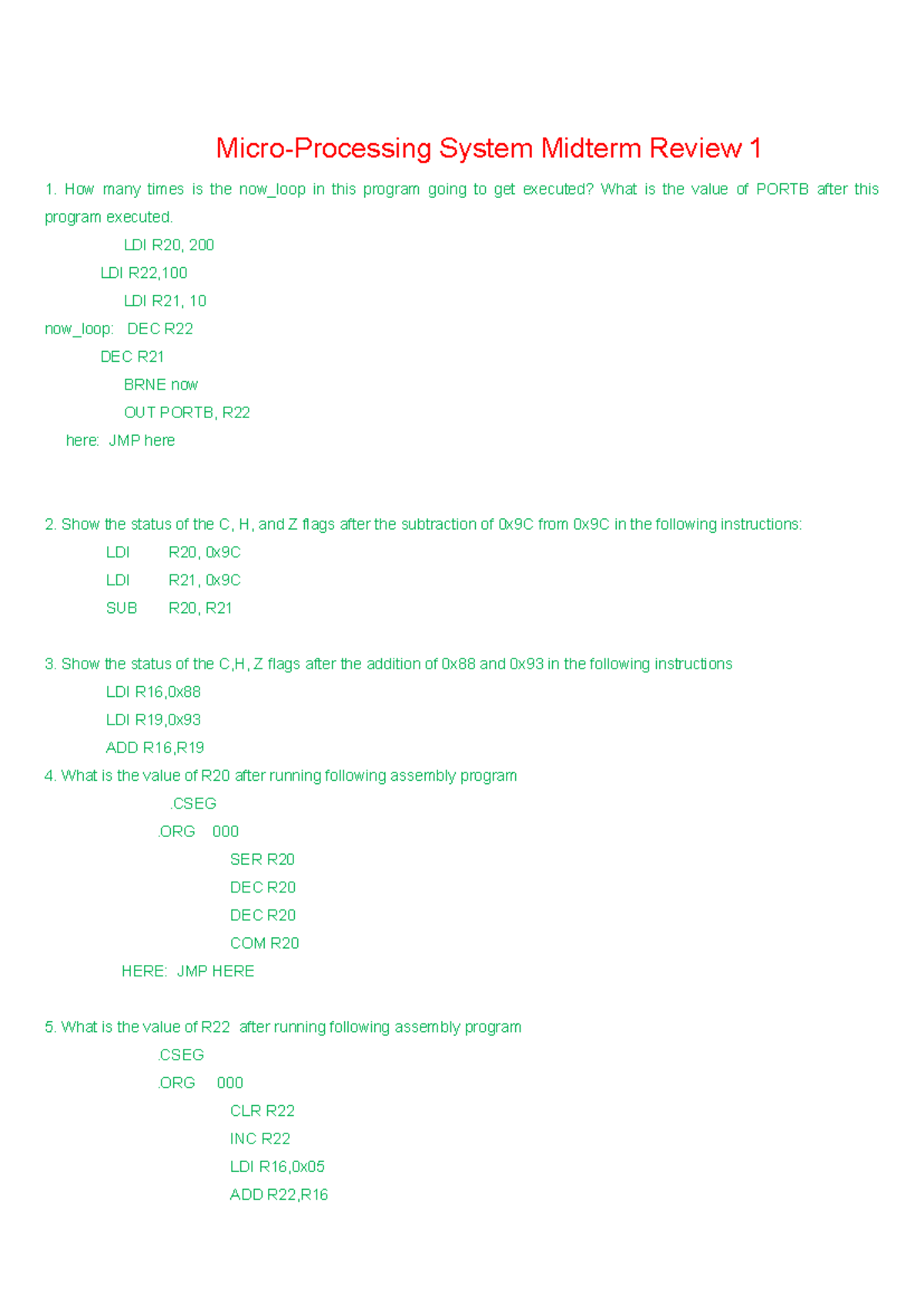 Micro-processing System Midterm Review 1: Key Concepts and Questions ...