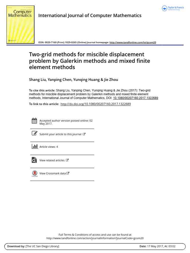 Two-Grid Methods For Miscible Displacement Problem by Galerkin Methods ...