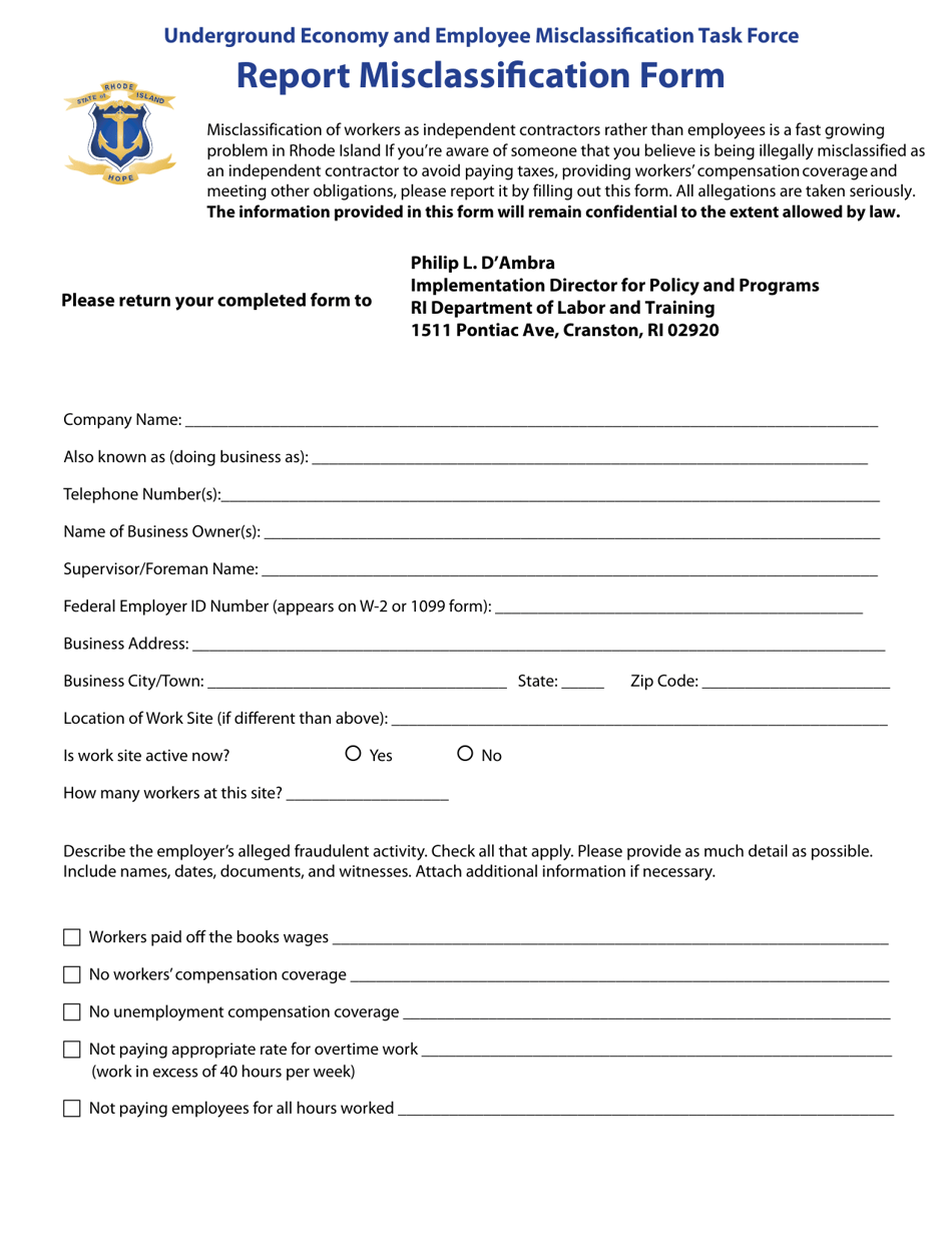 Rhode Island Report Misclassification Form - Fill Out, Sign Online and ...