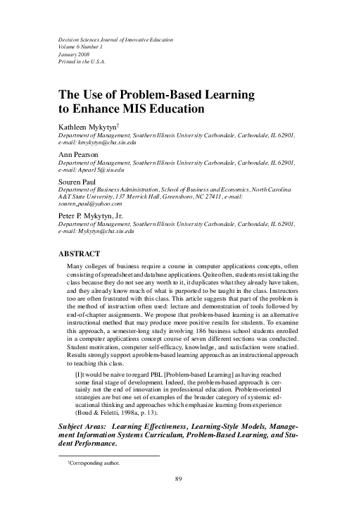 (PDF) The Use of Problem-Based Learning to Enhance MIS Education