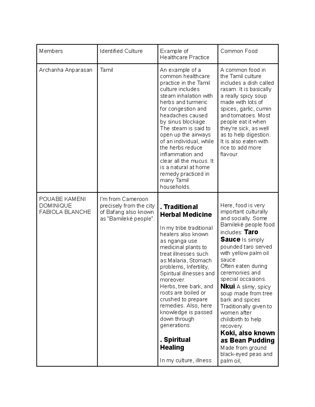 Cultural Practices in Healthcare: Tamil & Bamileké Traditions PPG - Studocu