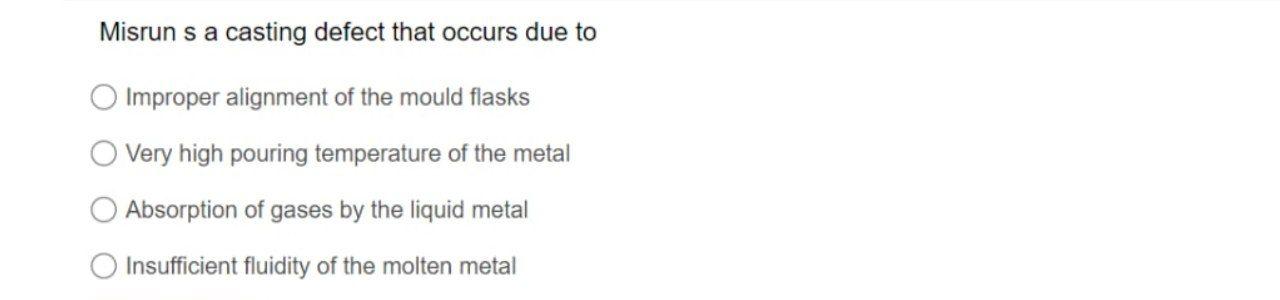 [SOLVED] Misrun is the defect produced in casting process due to the ...