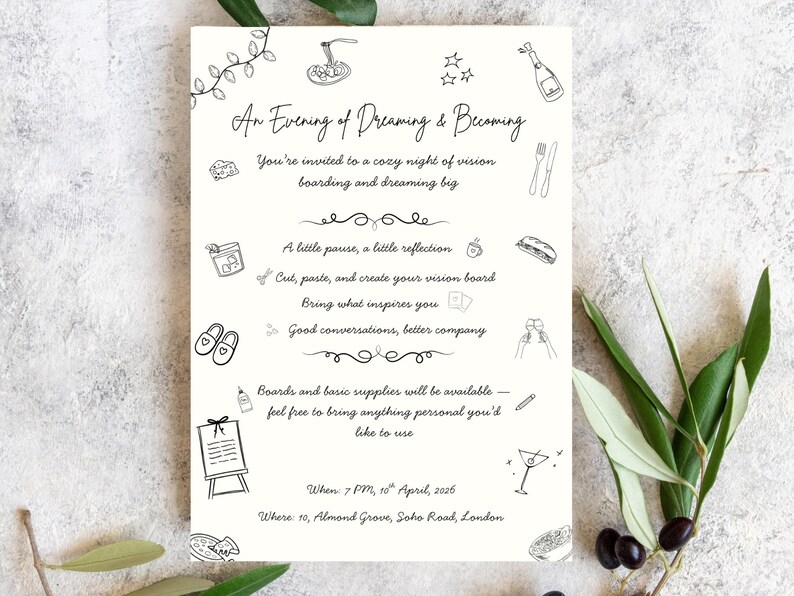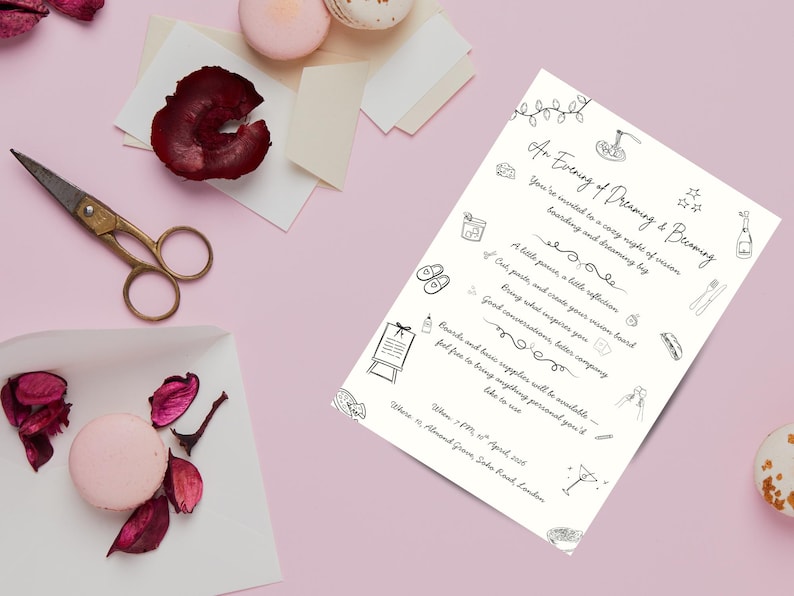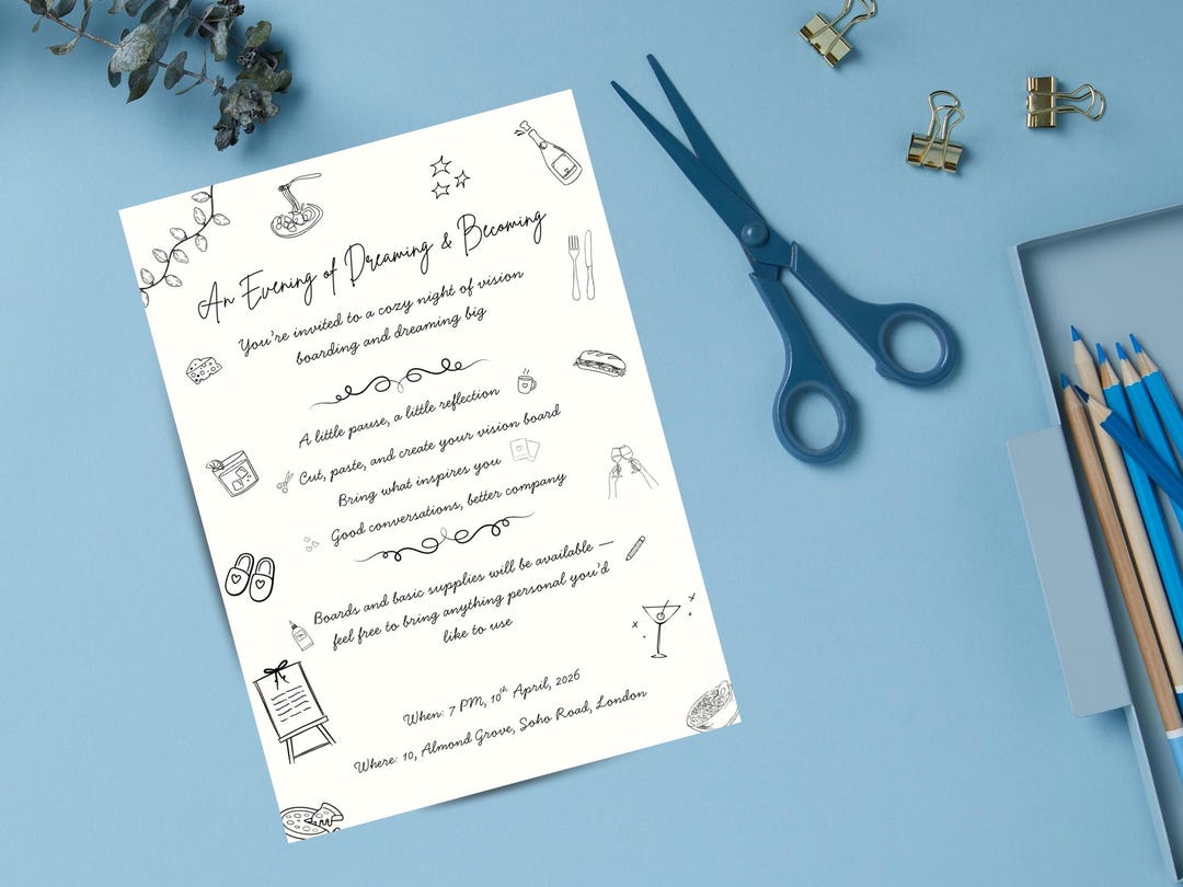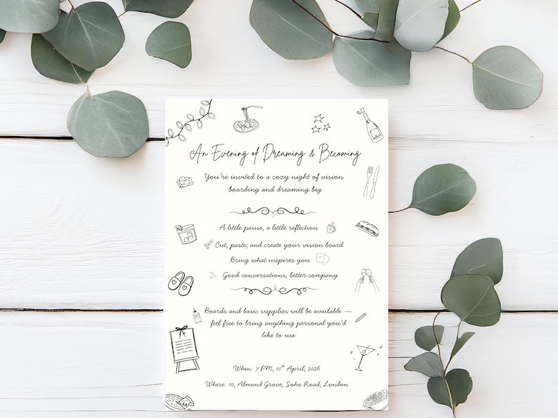 Vision Board Party Invitation, Line Art Manifestation Night Invite ...