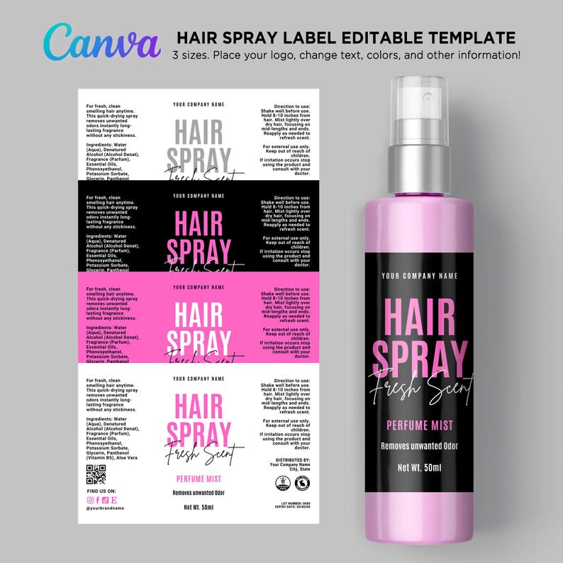 Hair Spray Label Template Canva, Hair Perfume Mist Label Design ...