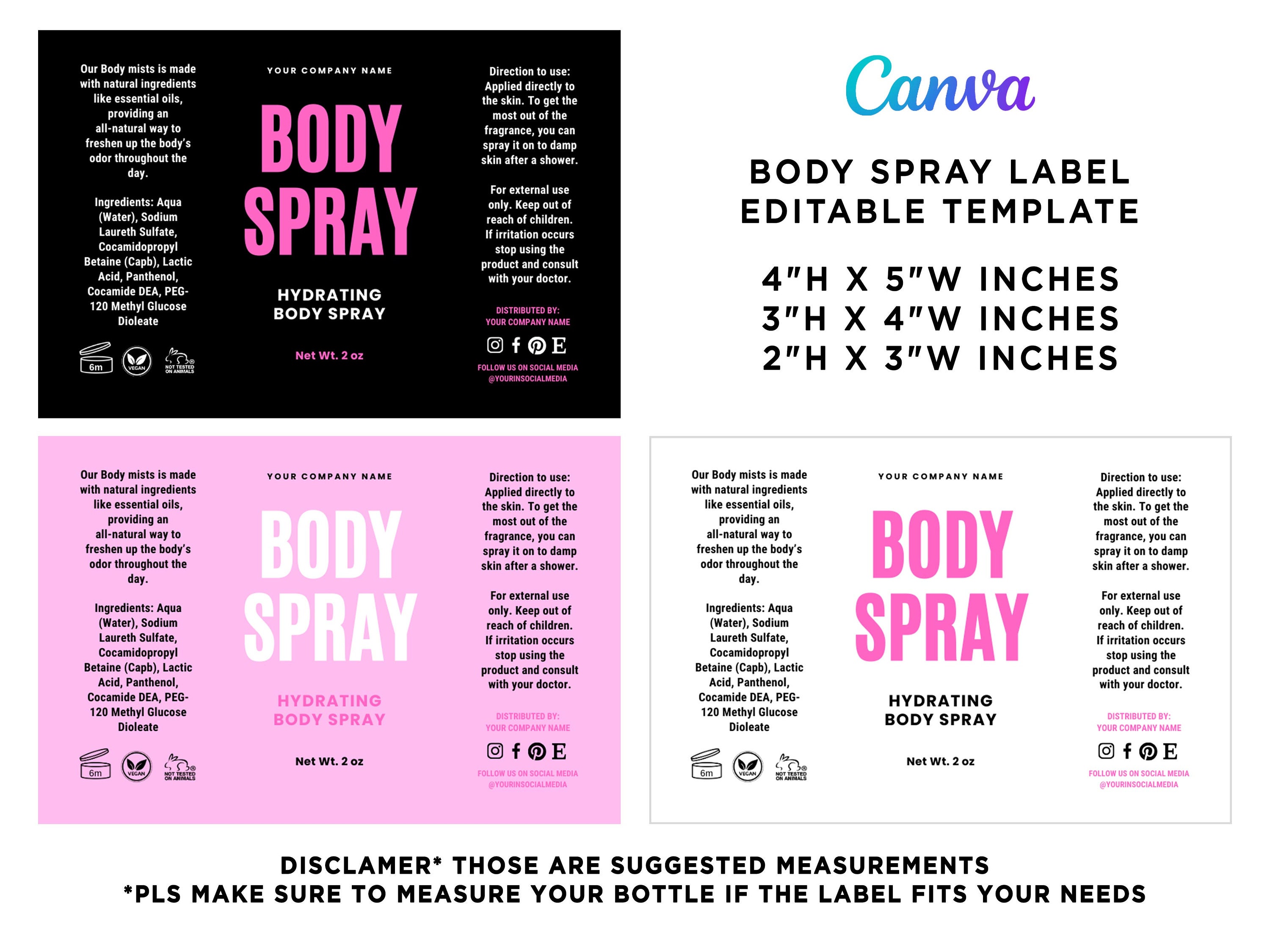 Body Mist Label Template - Etsy