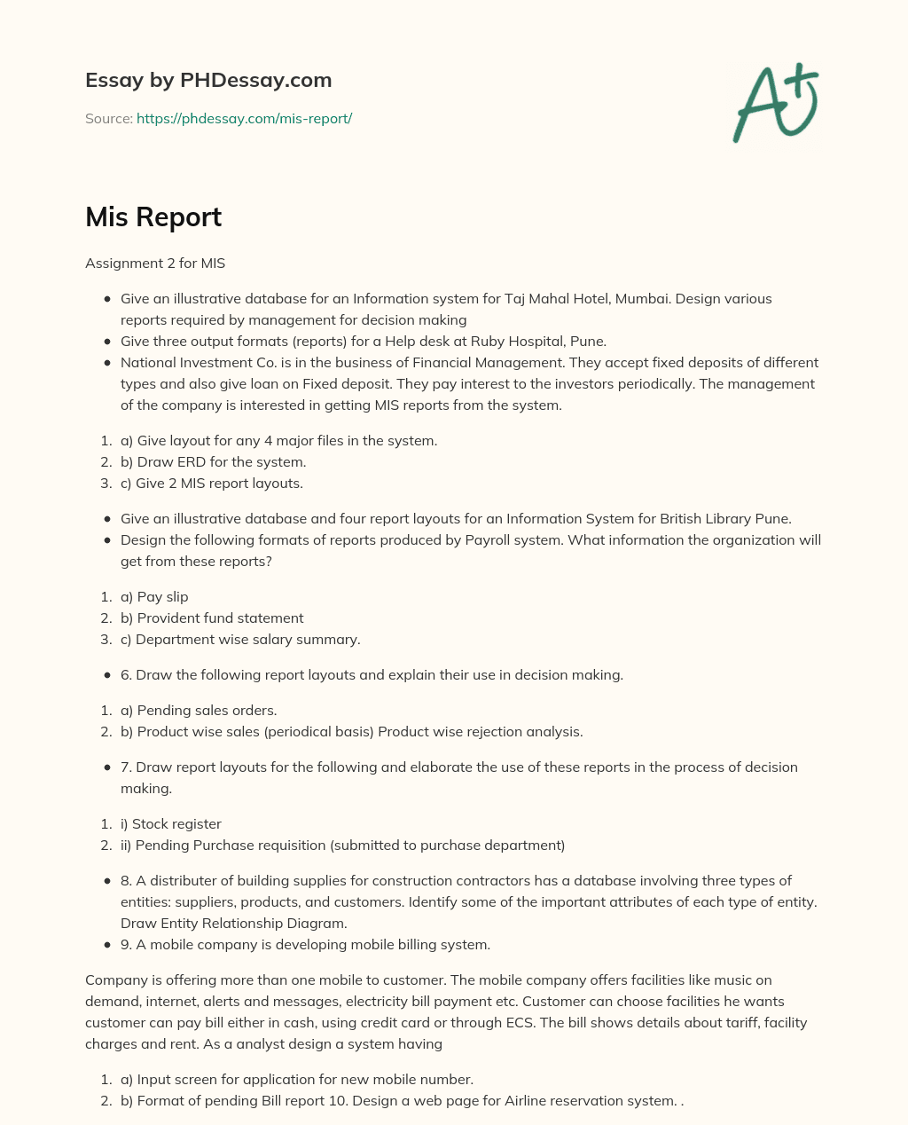 Mis Report (300 Words) - PHDessay.com