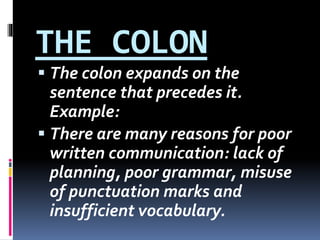 Punctuation Marks - Communication Skills - THE COLON (:) The colon is a ...