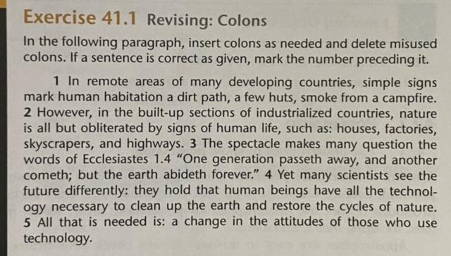 Solved Exercise 41.1 Revising: Colons In the following | Chegg.com