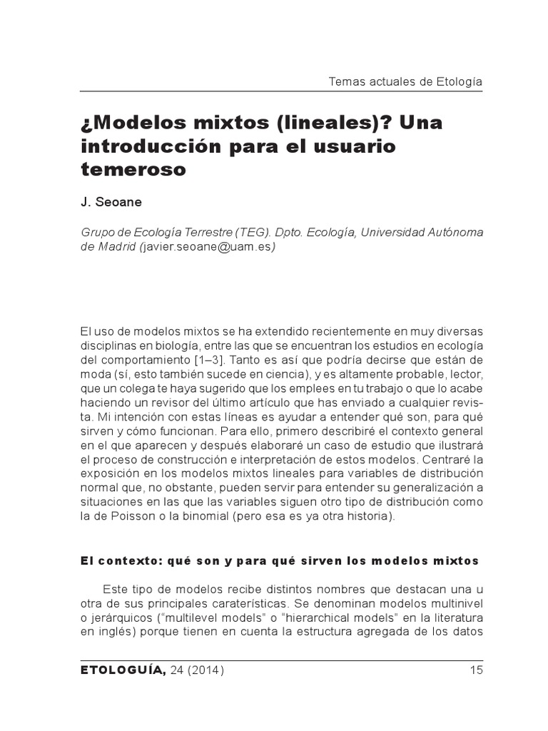 (PDF) Introducción a los modelos mixtos (Introduction to mixed models)