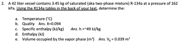 SOLVED: A42 liter vessel contains 3.45 kg of saturated(aka two-phase ...