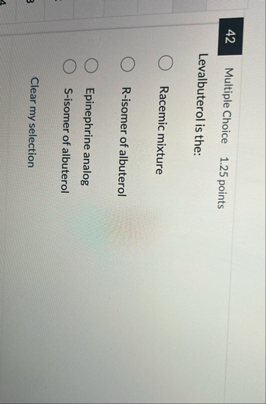 Solved Multiple Choice ,1.25 pointsLevalbuterol is | Chegg.com