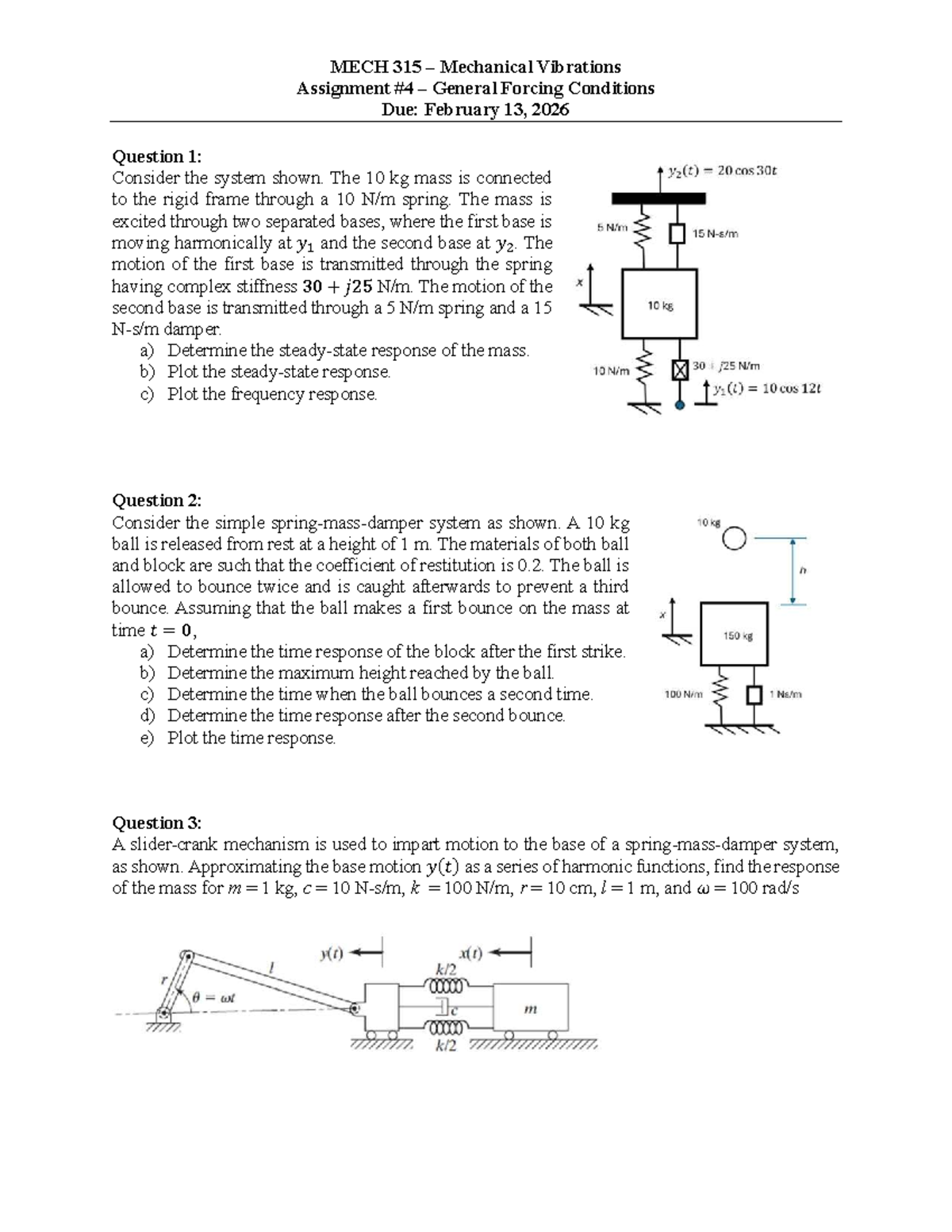 MECH 315 - Assignment 4: Mechanical Vibrations & Forcing Conditions ...