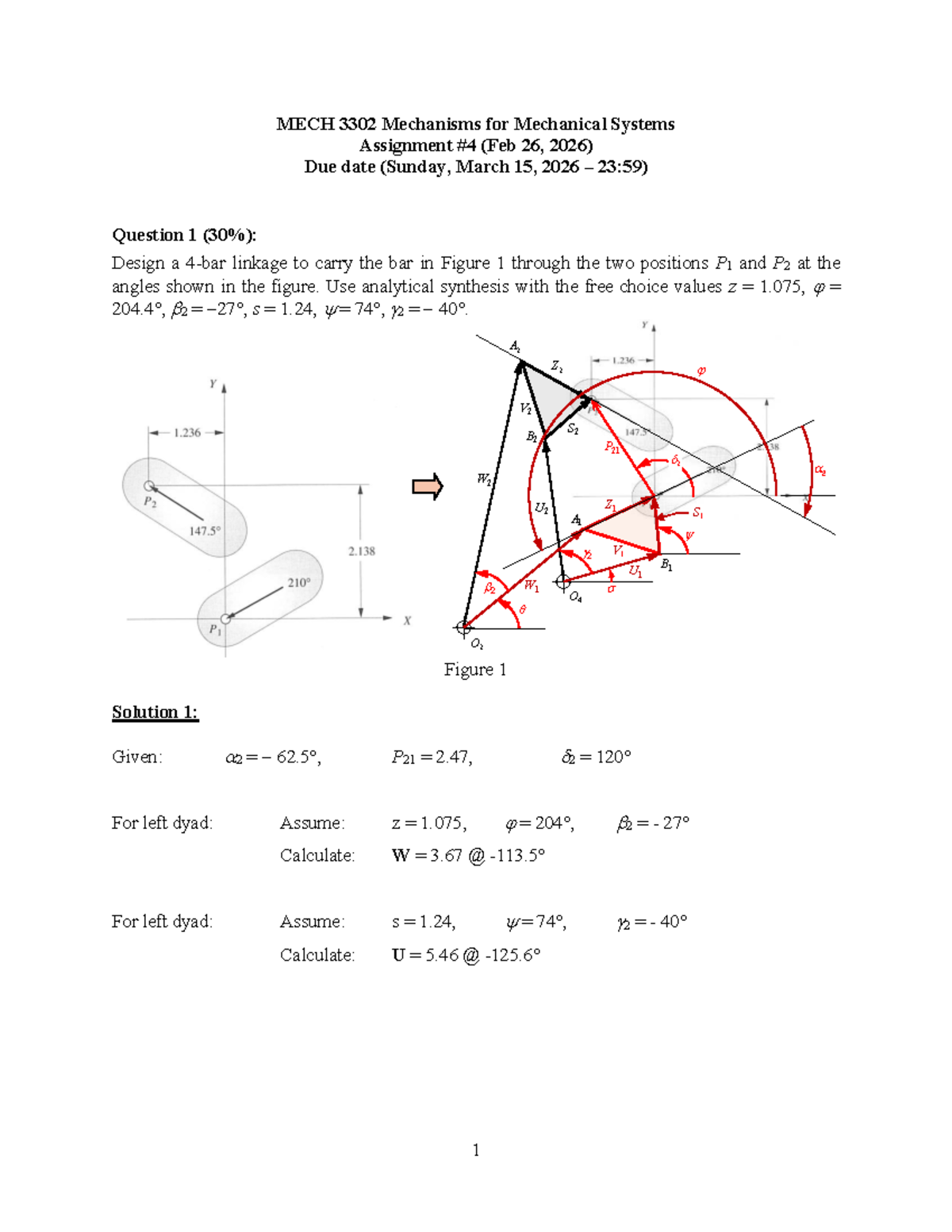 MECH 3302 Mechanisms for Mechanical Systems Assignment #4 Solutions ...