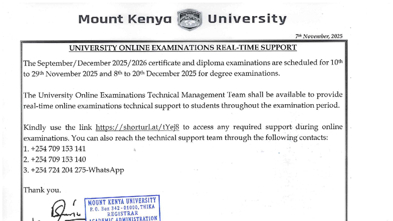 MKU Online Exam Support: Nov-Dec 2025 Schedule & Contacts - Studocu