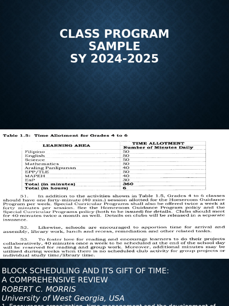 Sample Class Program Sy 2024 2025 Eipcrf Printable Word