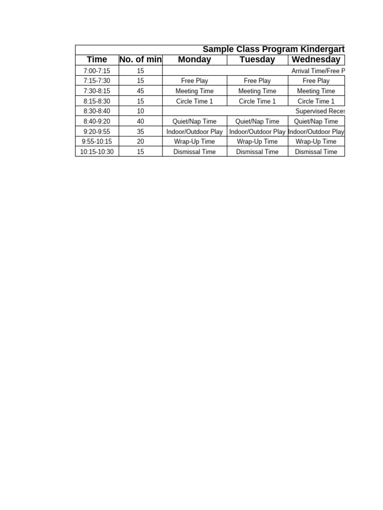 Sample CLASSROOM PROGRAM For KINDERGARTEN | PDF | Behavior Modification ...