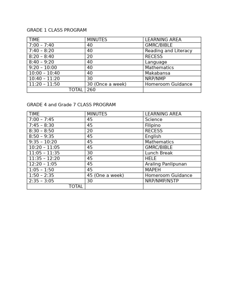 Class Program Sample ELEM | PDF
