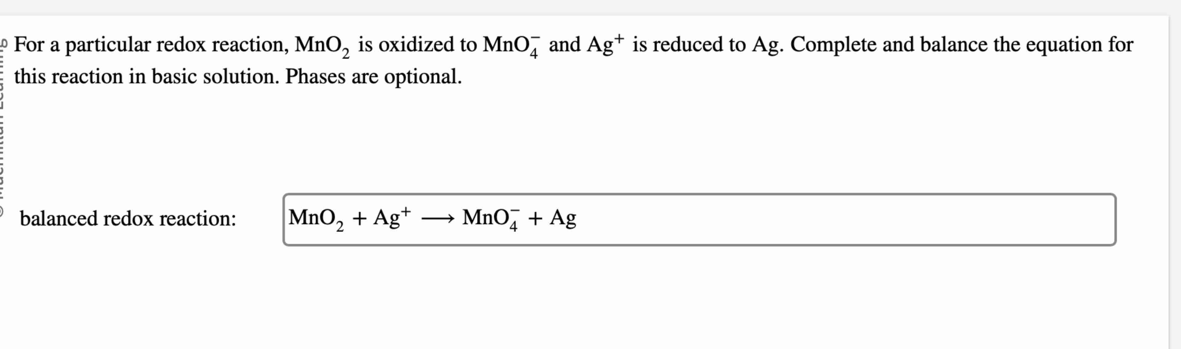 Solved In a particular redox reaction, MnO2 is oxidized to | Chegg.com