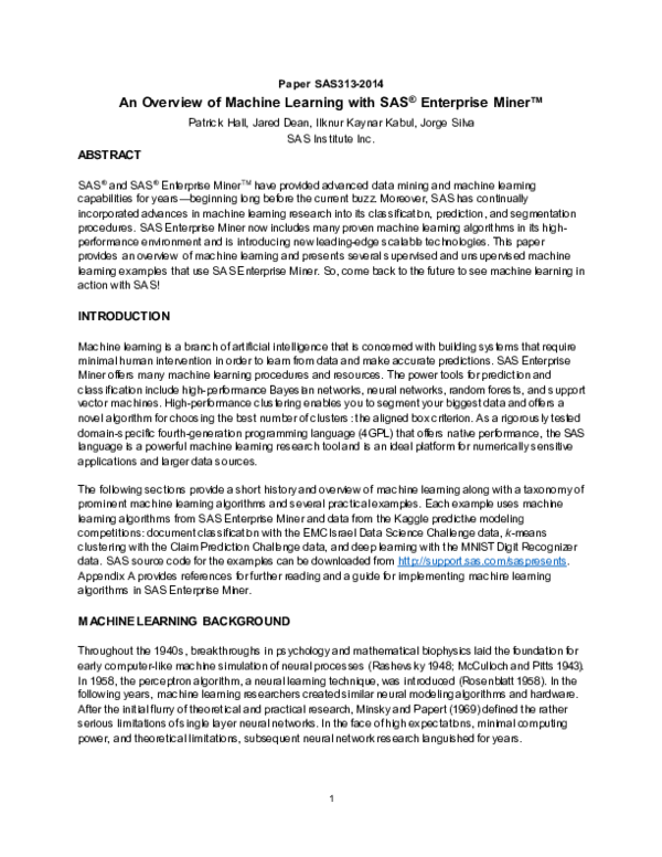 (PDF) 1 Paper SAS313-2014 An Overview of Machine Learning with SAS ...