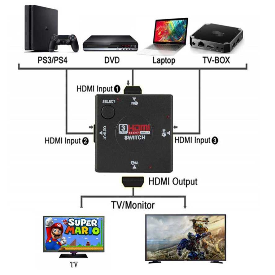 HDMI Switch 3 input 1 Output Mini 3 Port Female to... – Grandado