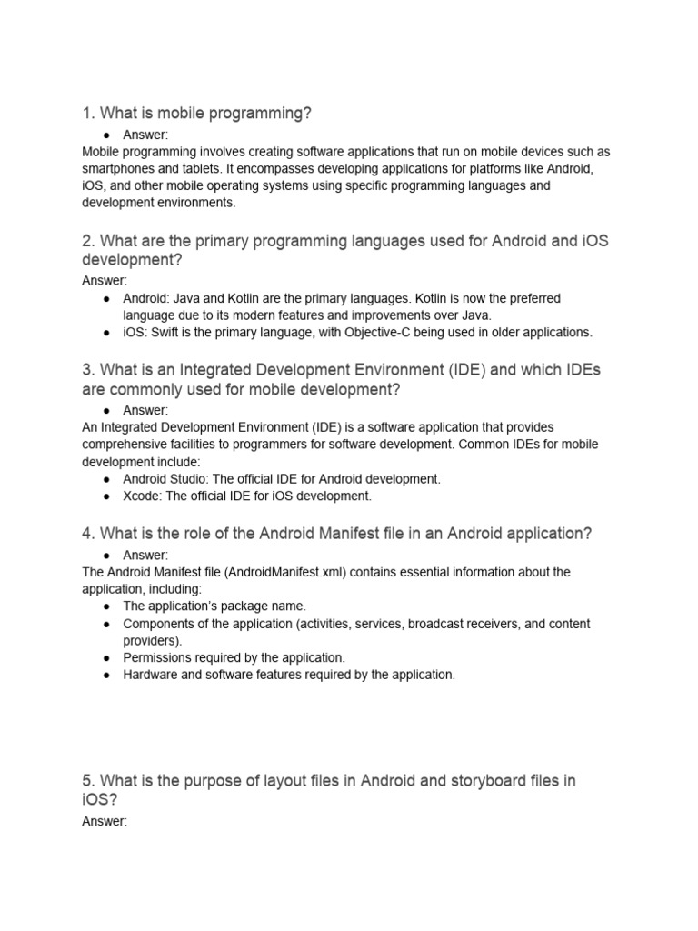 Fundamentals of Mobile Programming Answer Sheet 1 | PDF