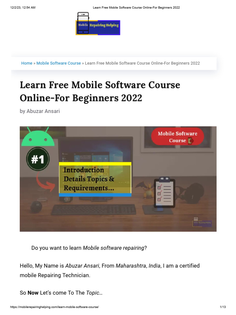 1.learn Free Mobile Software Course Online-For Beginners 2022 | PDF ...