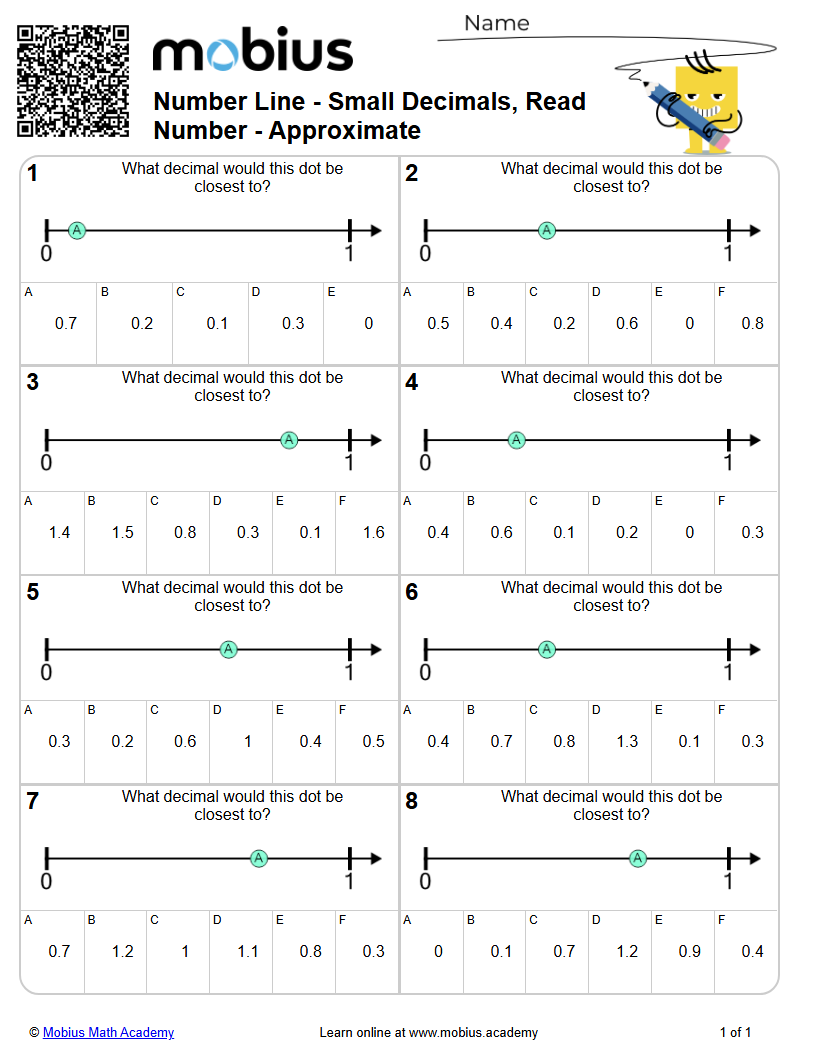 Number Line - Small Decimals, Read Number - Approximate (Level 1 ...