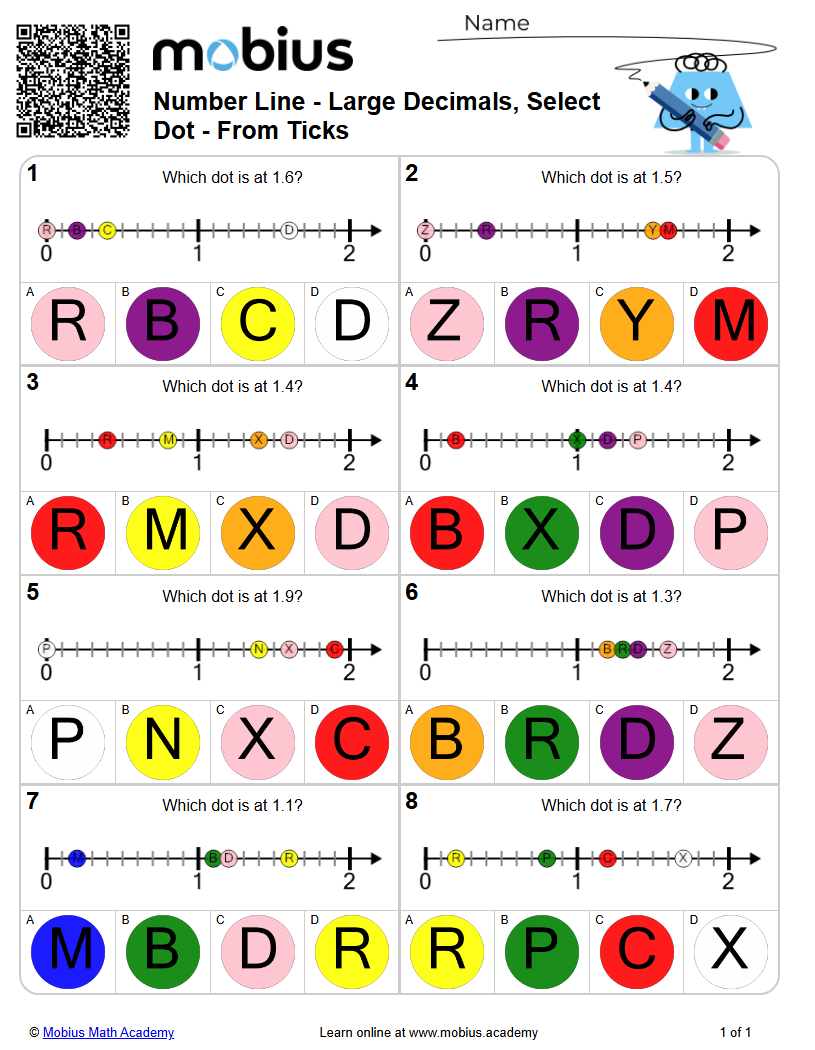 Number Line - Large Decimals, Select Dot - From Ticks (Level 1 ...