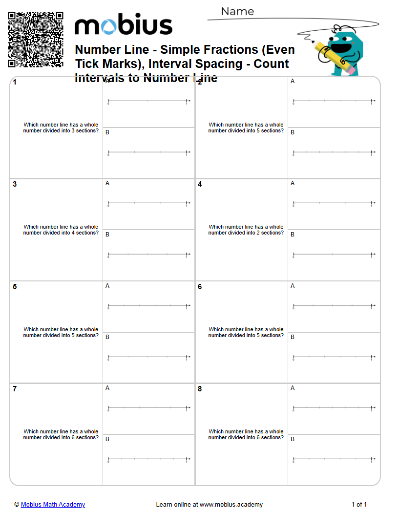Number Line - Simple Fractions (Uneven Tick Marks), Interval Spacing ...