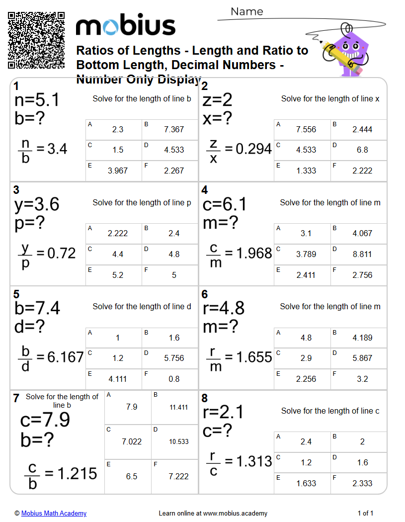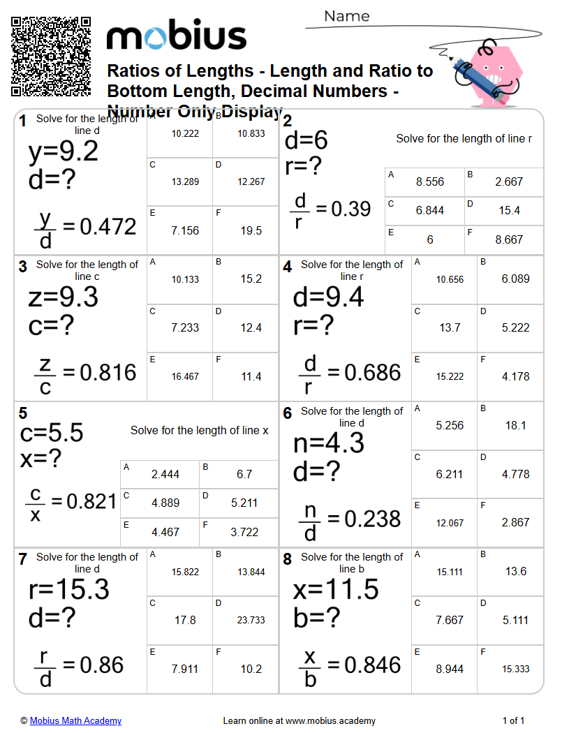 Ratios of Lengths - Length and Ratio to Bottom Length, Decimal Numbers ...
