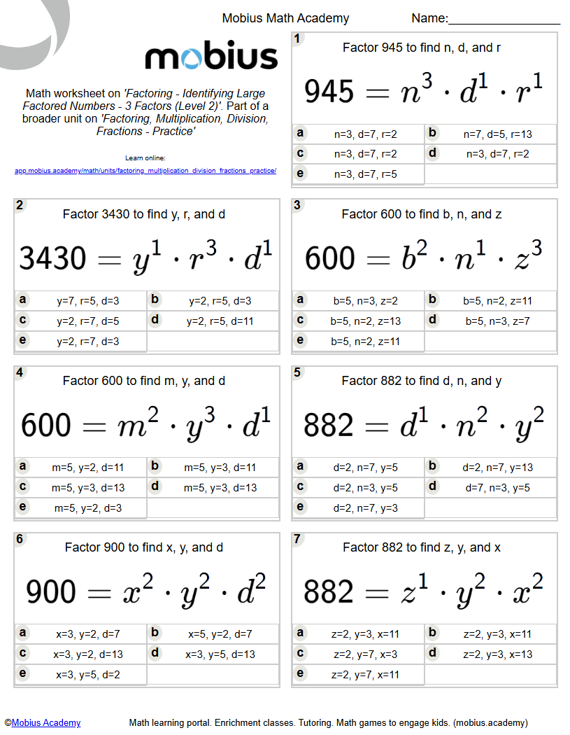 Factoring - Identifying Large Factored Numbers - 3 Factors (Level 2 ...