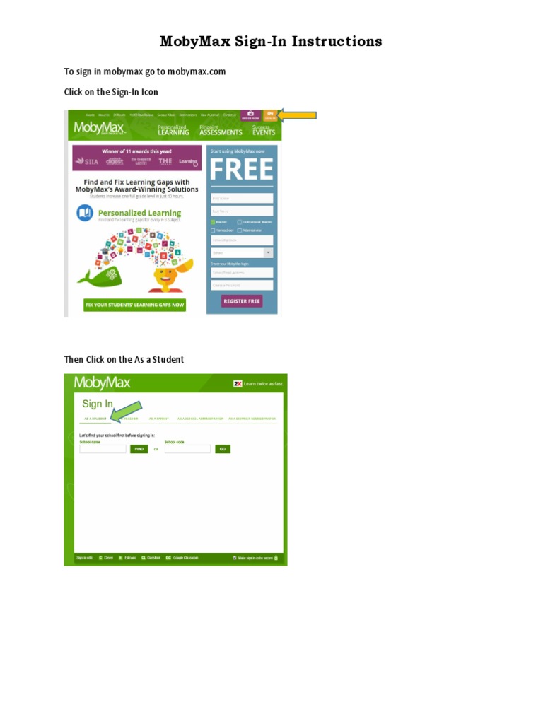 Mobymax Sign-In Instructions | PDF | Software | Computing