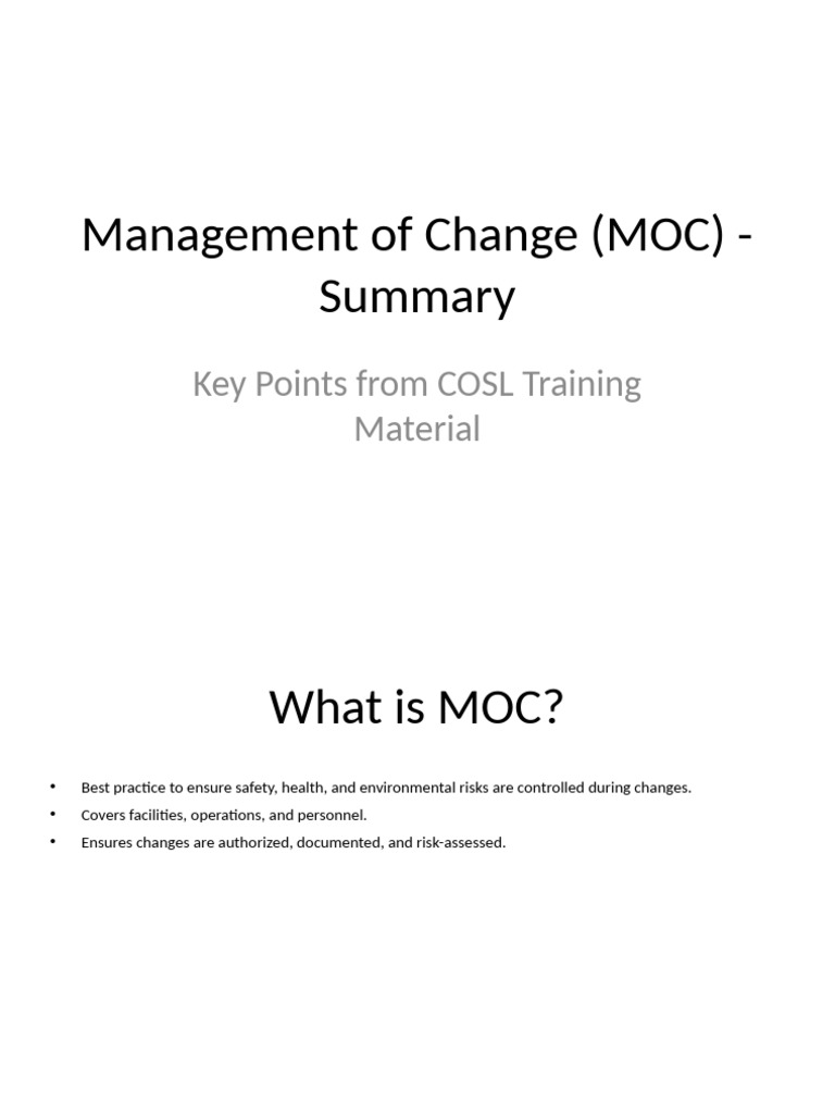 MANAGEMENT OF CHANGE ( MOC) TRAINING. #adnoc #hseengineers #hse # ...
