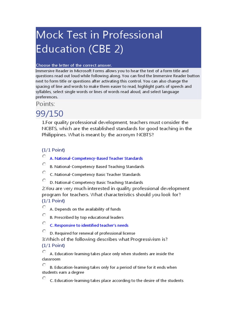 Mock Test in Professional Education | PDF | Curriculum | Inclusion ...