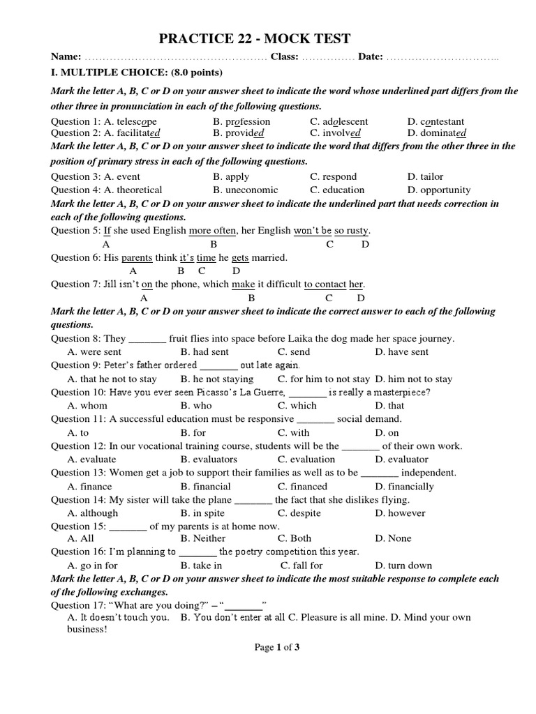 Practice Test. Mock Exam | PDF