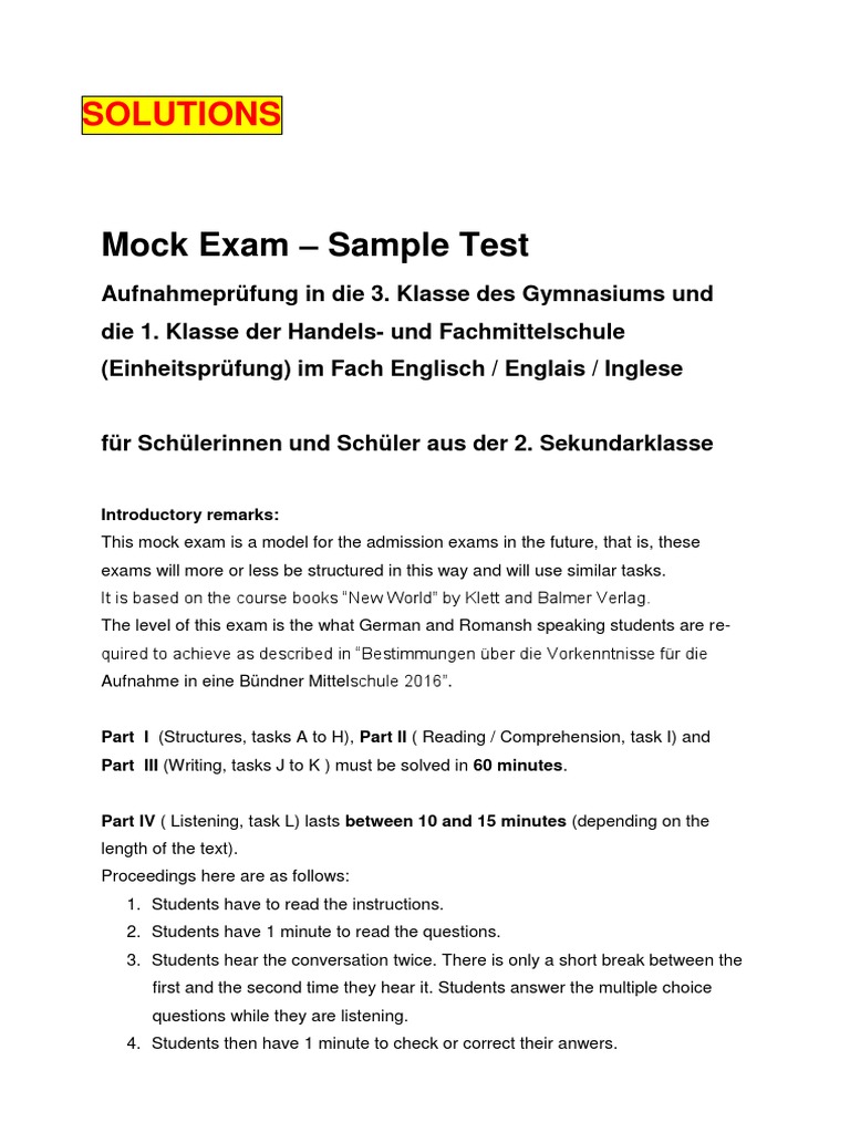 Mock Exam - Sample Test: Solutions | PDF | First Transcontinental ...