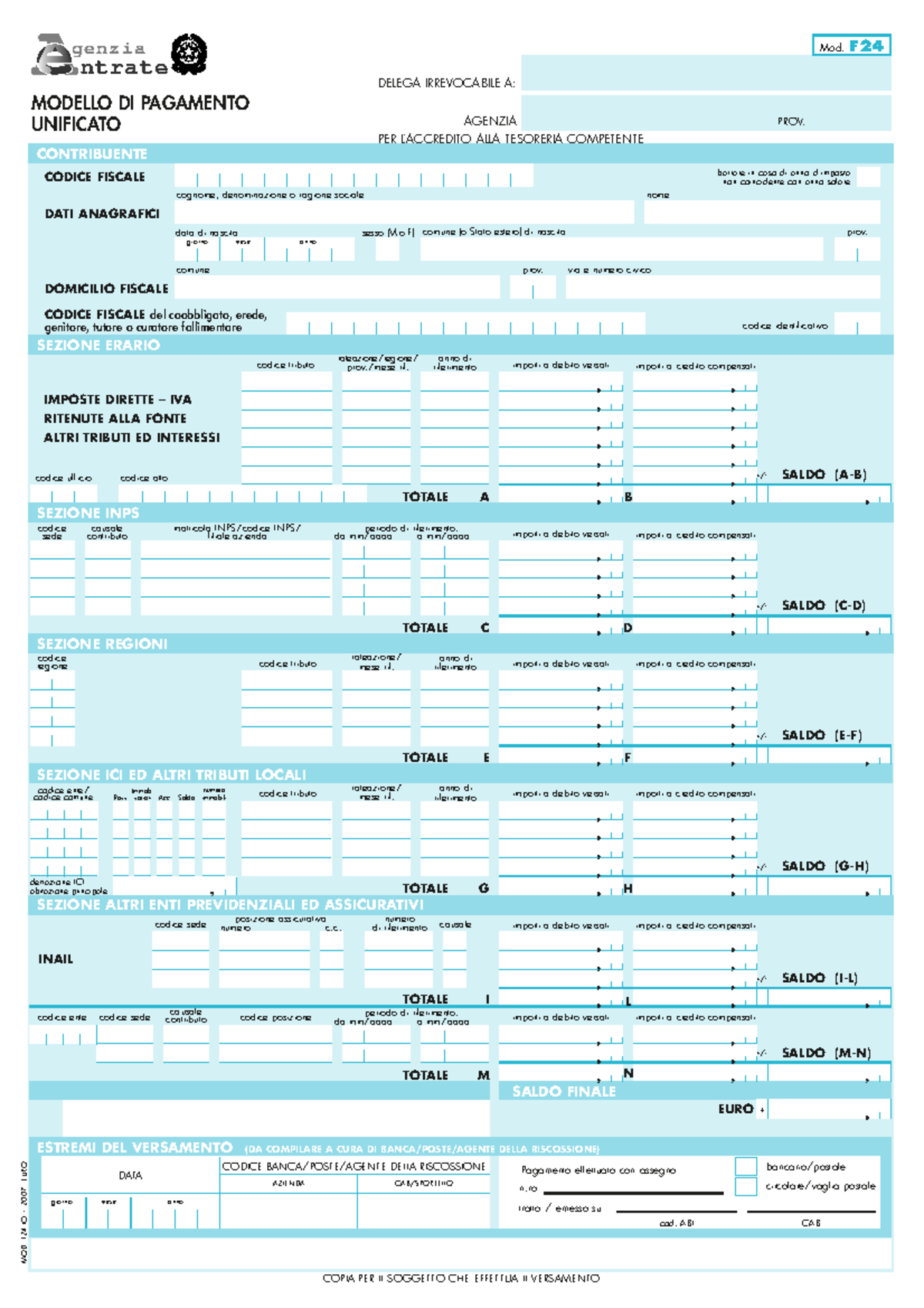Modello F24 da compilare - Download