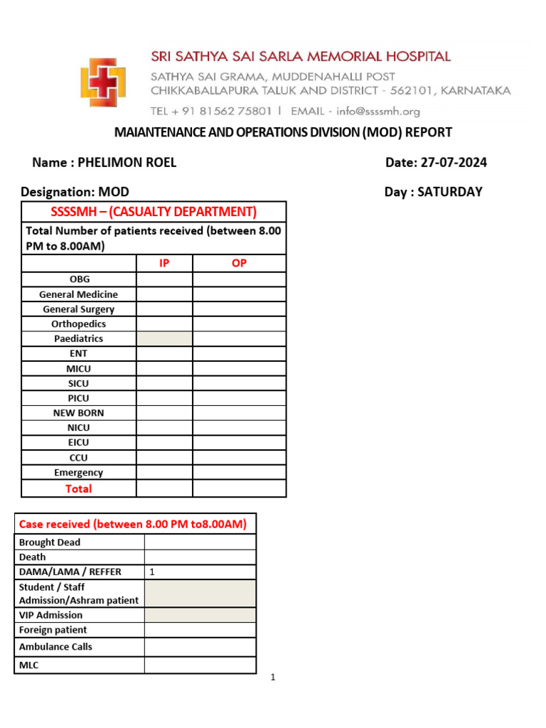 MOD Daily Operations Report - July 2024 | PDF | Intensive Care Unit ...