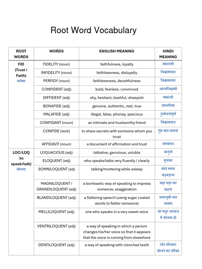 450+ Root Words List, Meaning, PDF