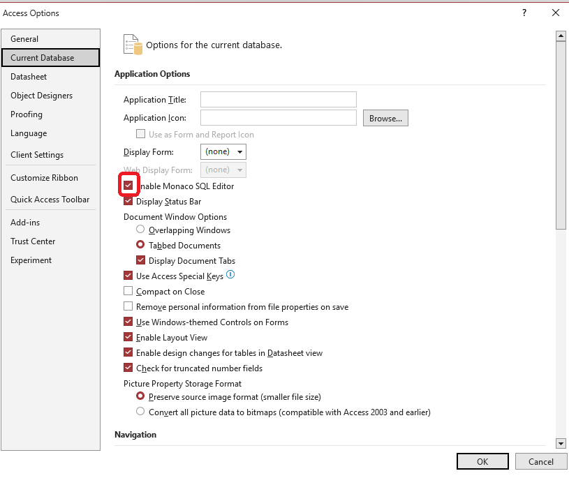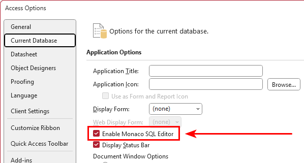 How to in Access disable the Monaco SQL editor without the checkbox ...
