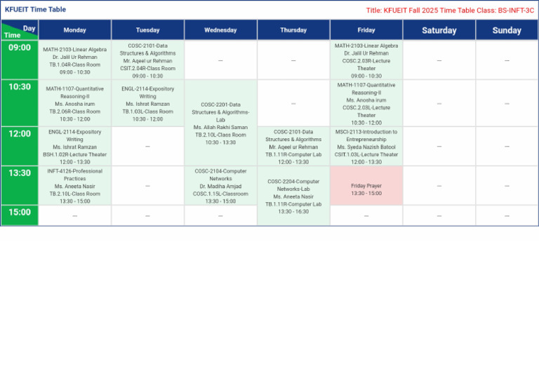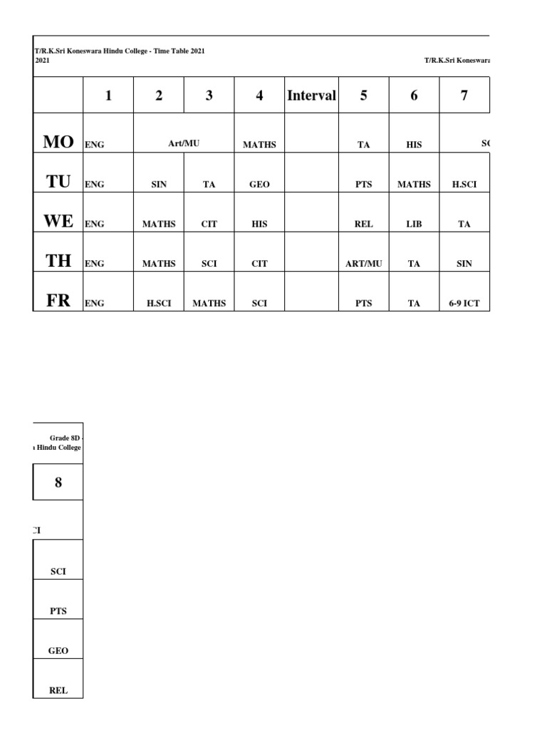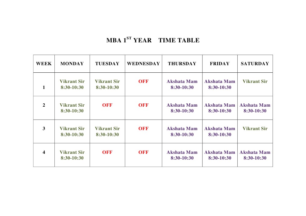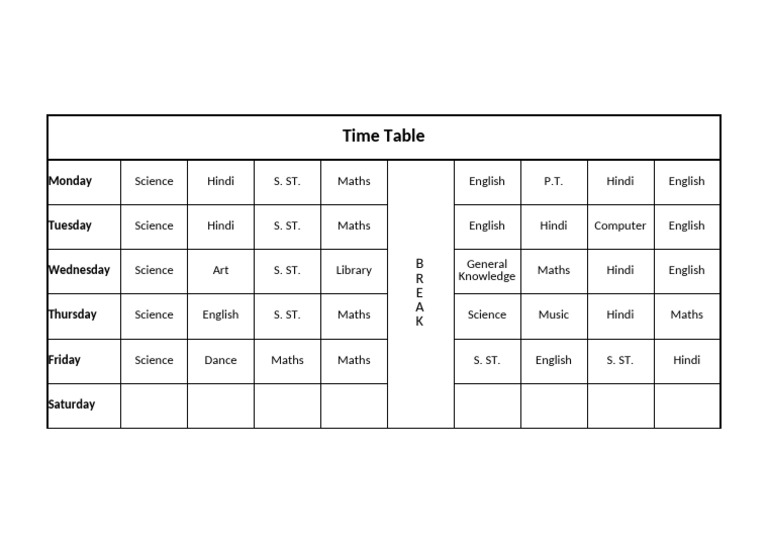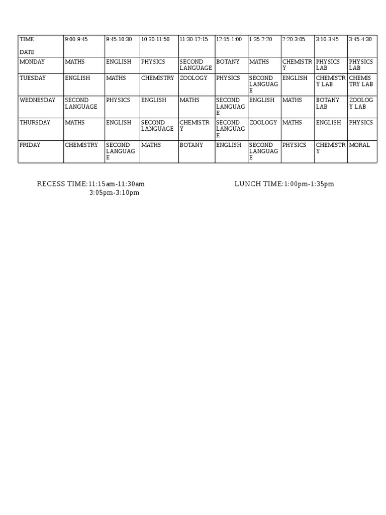 Time Table Format | PDF