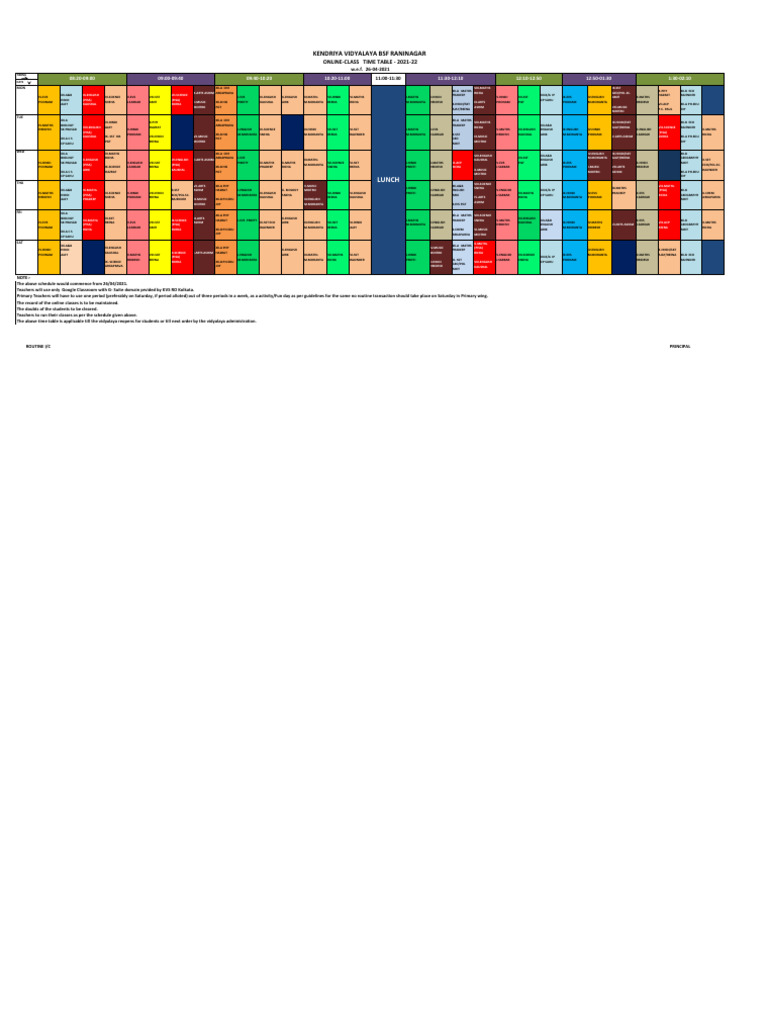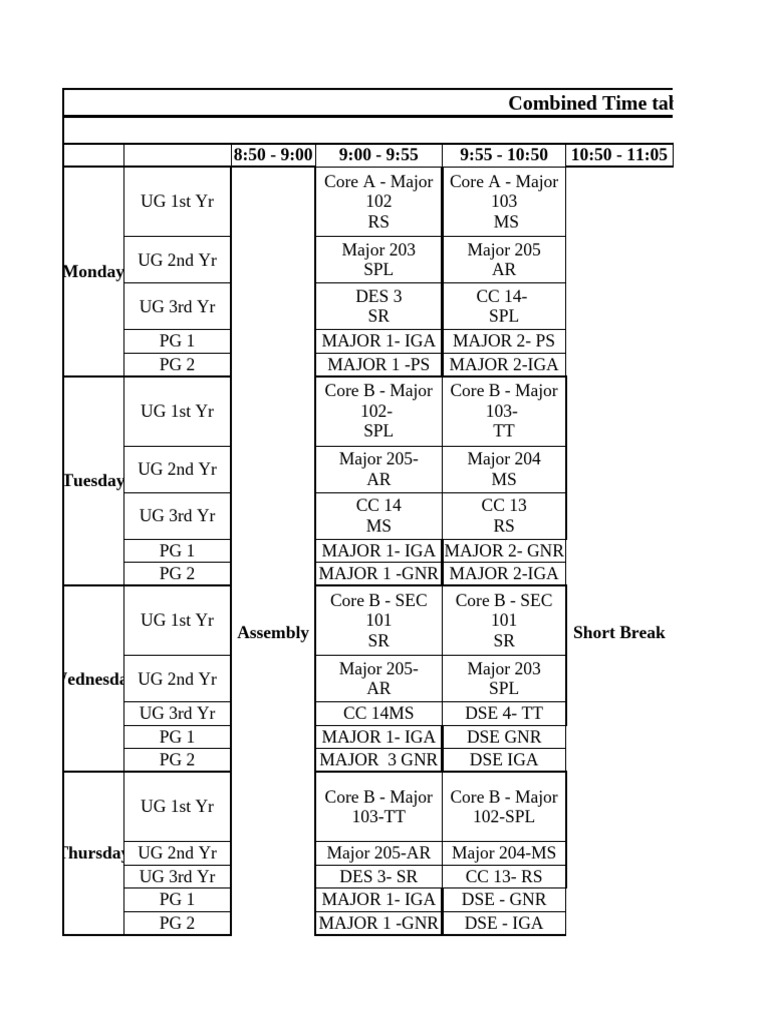 Common Time Table For Printout | PDF