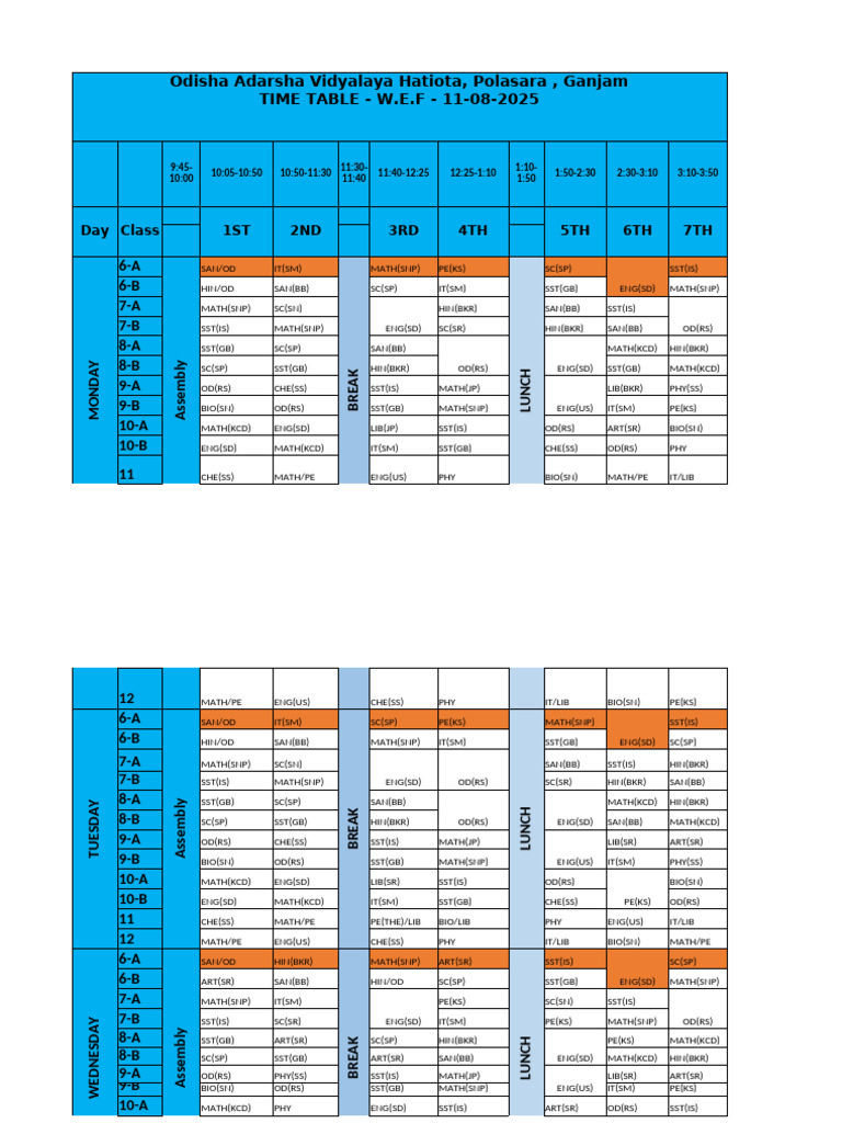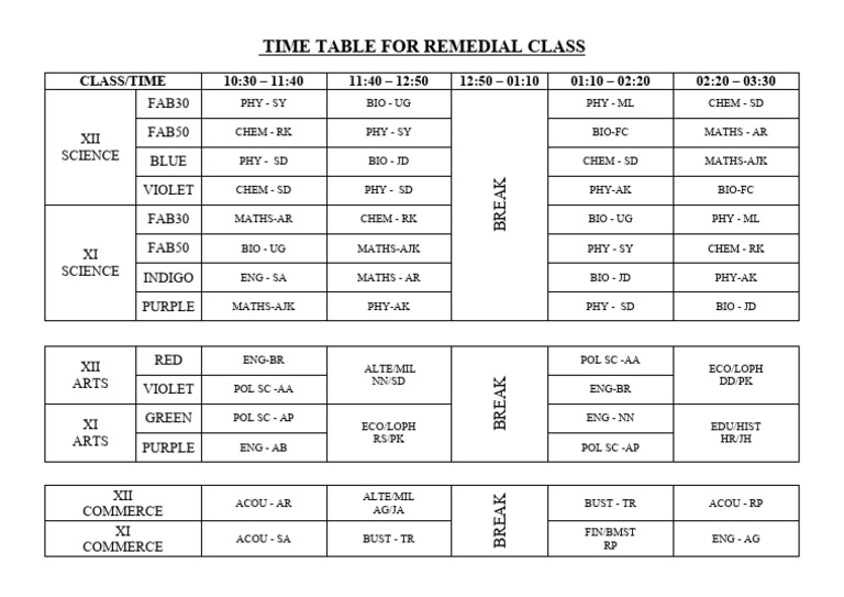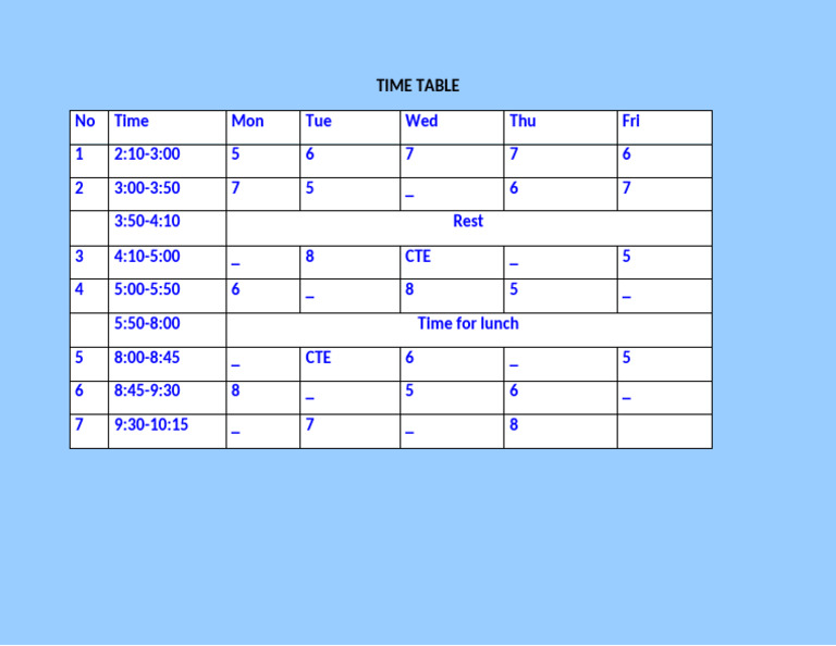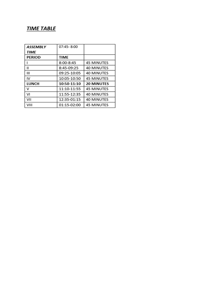 TIME TABLE Format | PDF