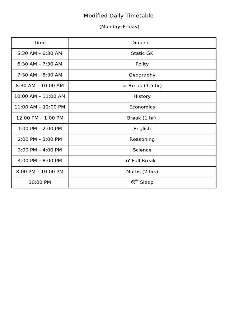 Modified Timetable | PDF