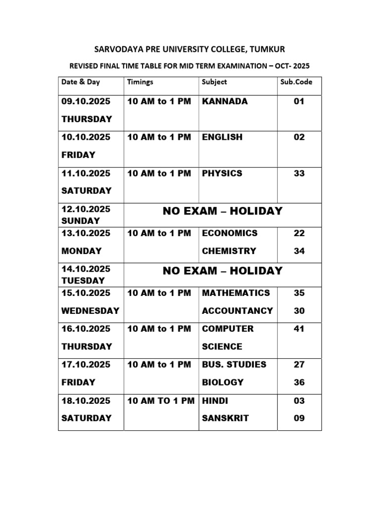 Revised Time Table MT | PDF