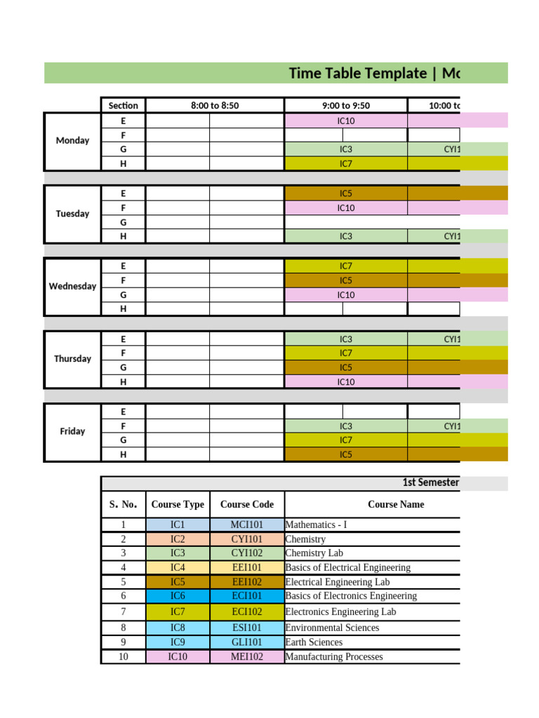 Time Table Template - Monsoon Semester - Integrated M.Tech (Mathematics ...