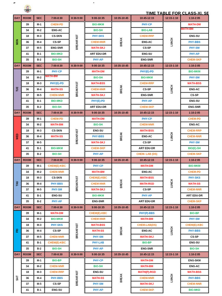 Time Table For All Sections | PDF
