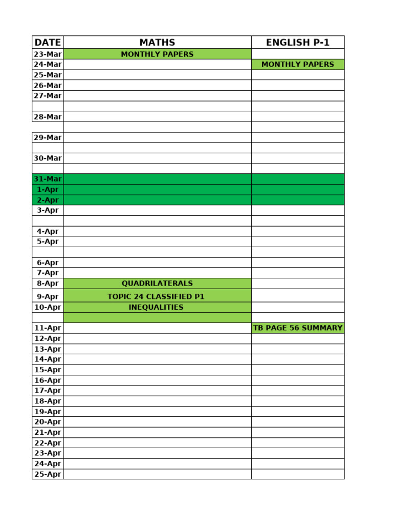 MOCK TIME-TABLE | PDF