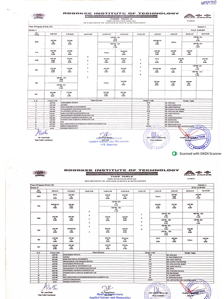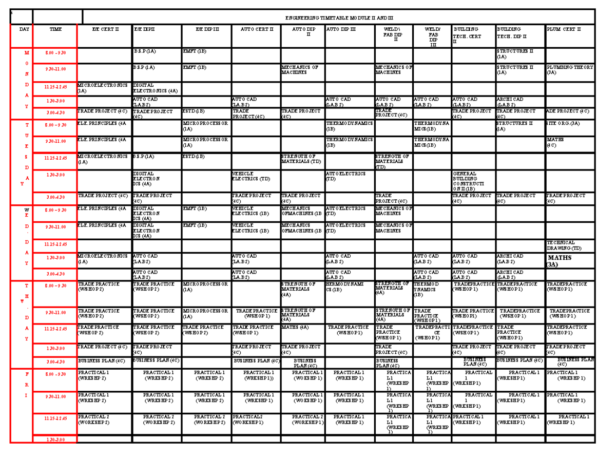 Modified Time Table | PDF | Science | Engineering