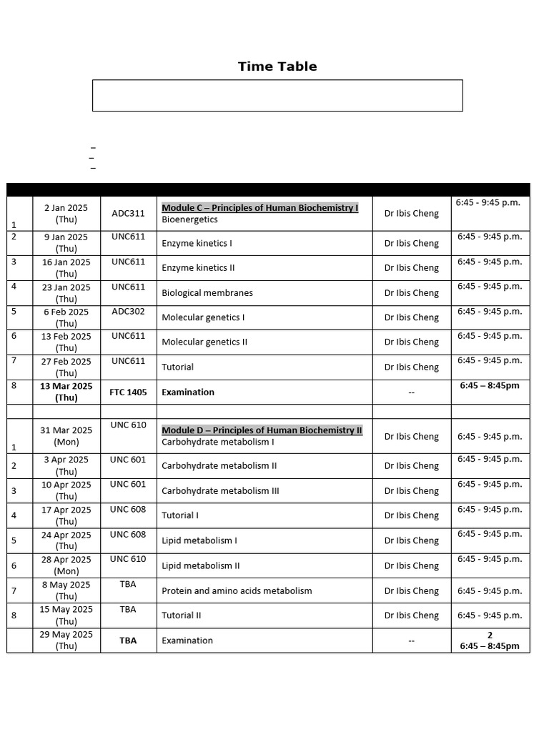 Mod C, D Timetable - HBP 2024 - v4 | PDF | Metabolism | Biotechnology